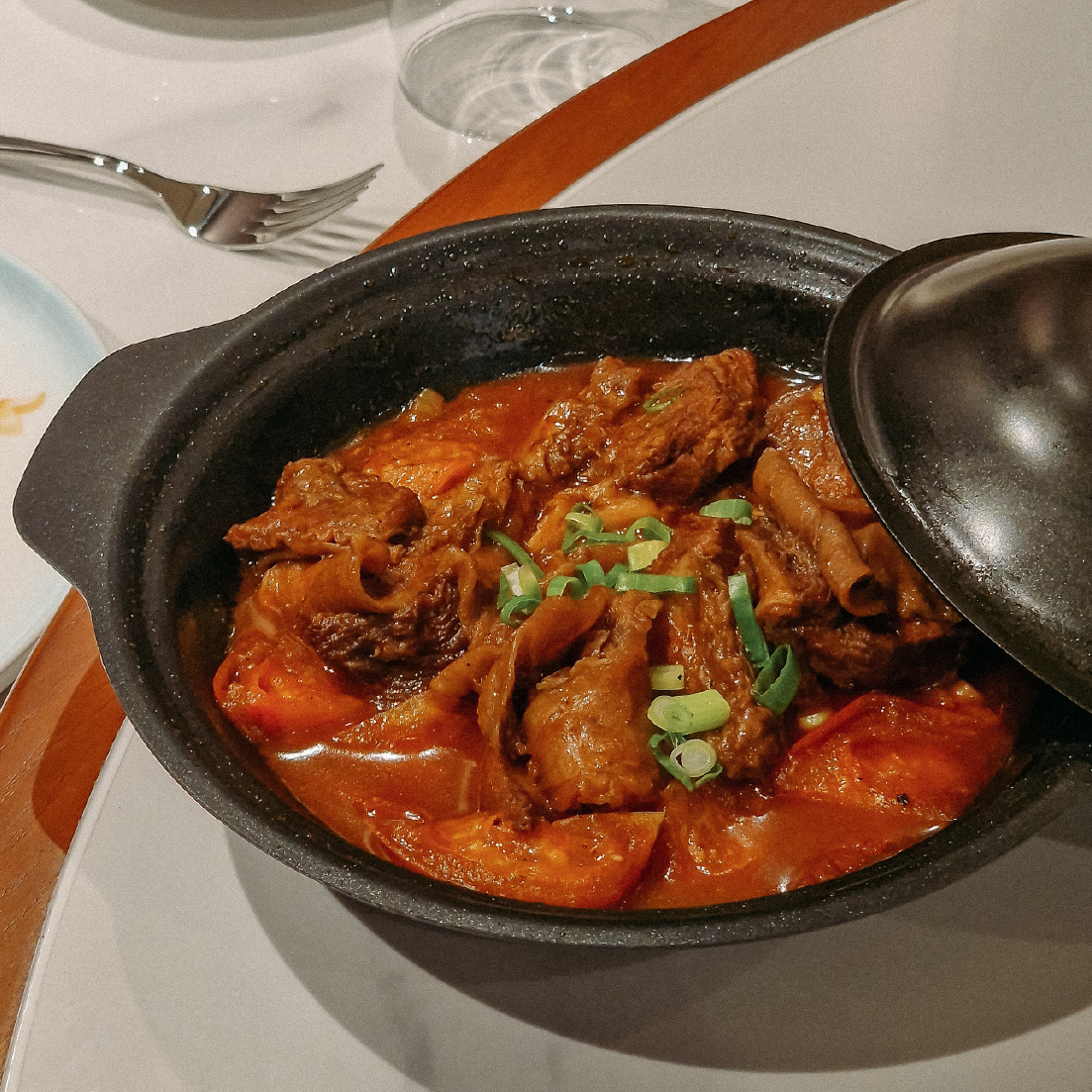 Slow-braised beef brisket in a rich Hong Kong-style tomato broth