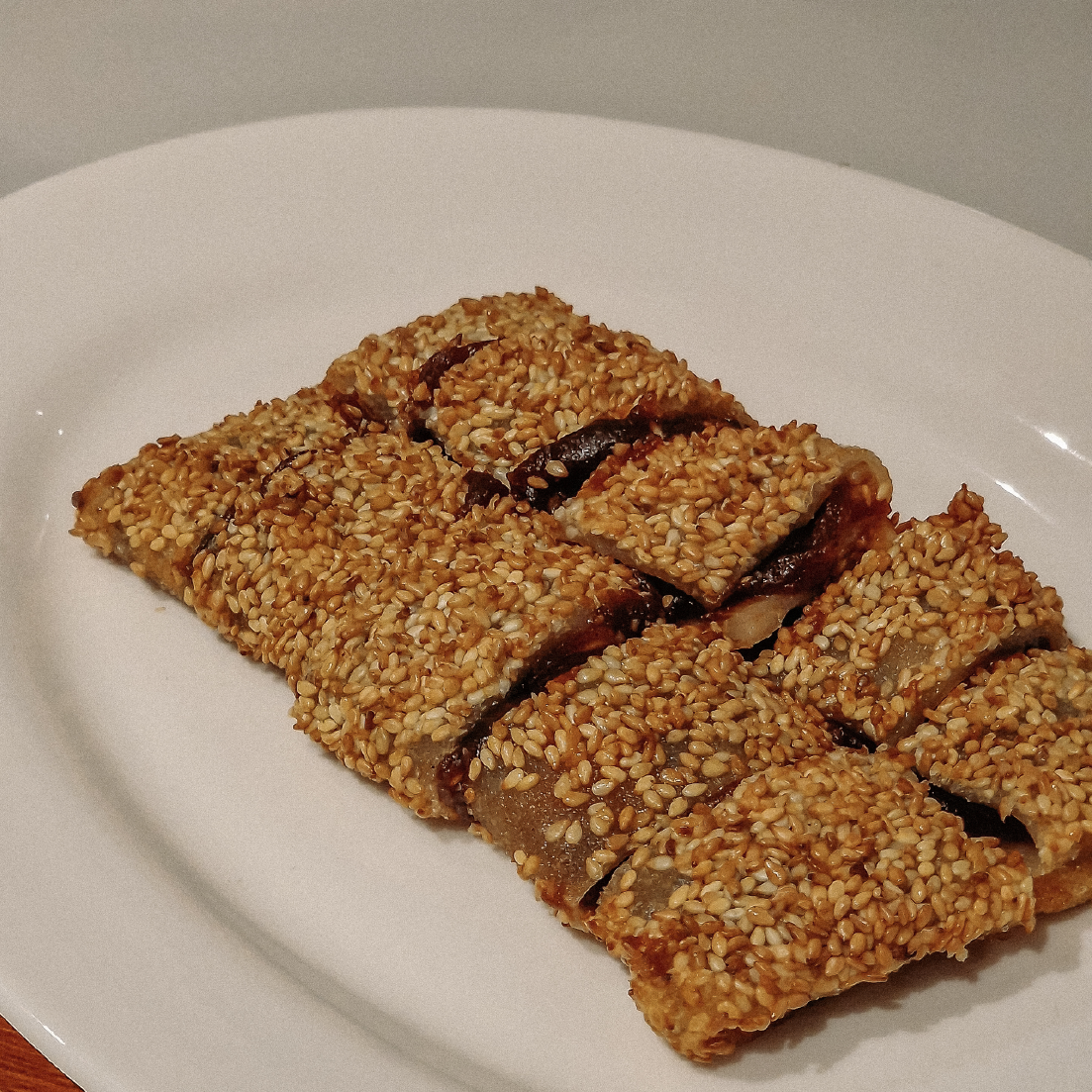 Chinese style crispy crêpe filled with sweet red bean and banana filling for a traditional delight